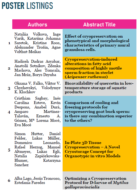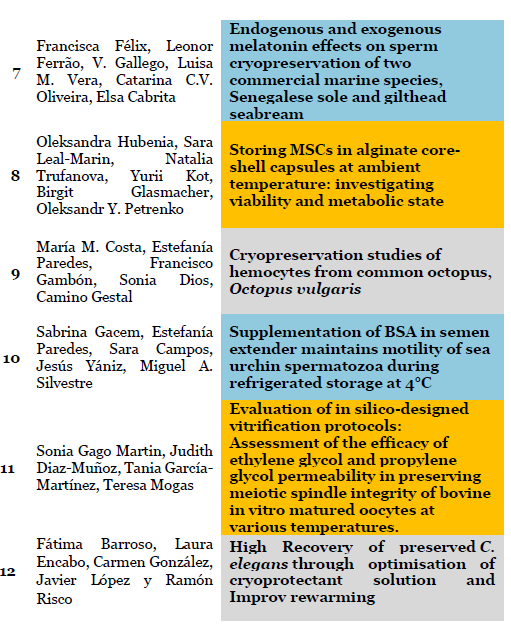 Sponsors of the meeting: Planer, Concello de Vigo, UVIGO Marine Research Centre, CRYOLOGYX, Scharlab company, BioDock, Cryoport systems, Cryoletters Journal. Please click here to read more information about the sponsors.